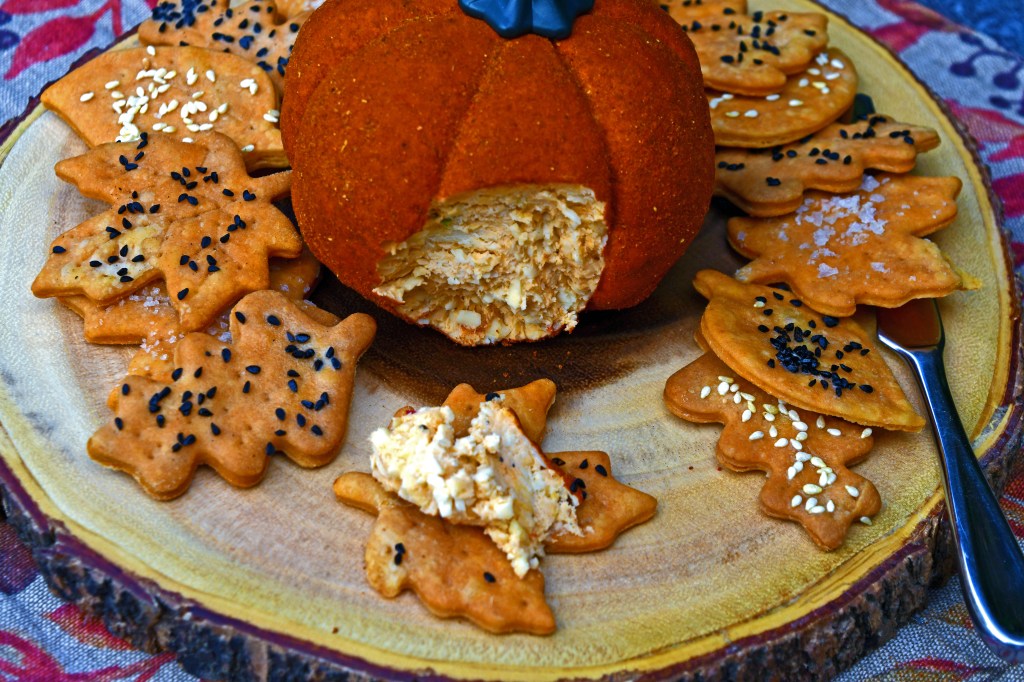 This one is fairly traditional with equal quantities of cream cheese and hard cheese and dusted with spices but shaped into a pumpkin! Great for an autumn party, Halloween or Thanksgiving.