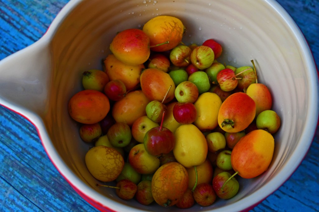 If you don’t have a crab apple tree in your garden, then you can find them growing in the woods and parks or I’ve heard that you can sometimes find them at a farmers market or farm shop, although I’ve never seen them for sale.